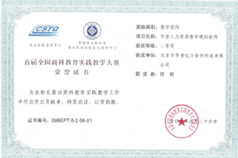 “人力资源模拟平台”中国商业联合会2009年全国实践教学大赛二等奖